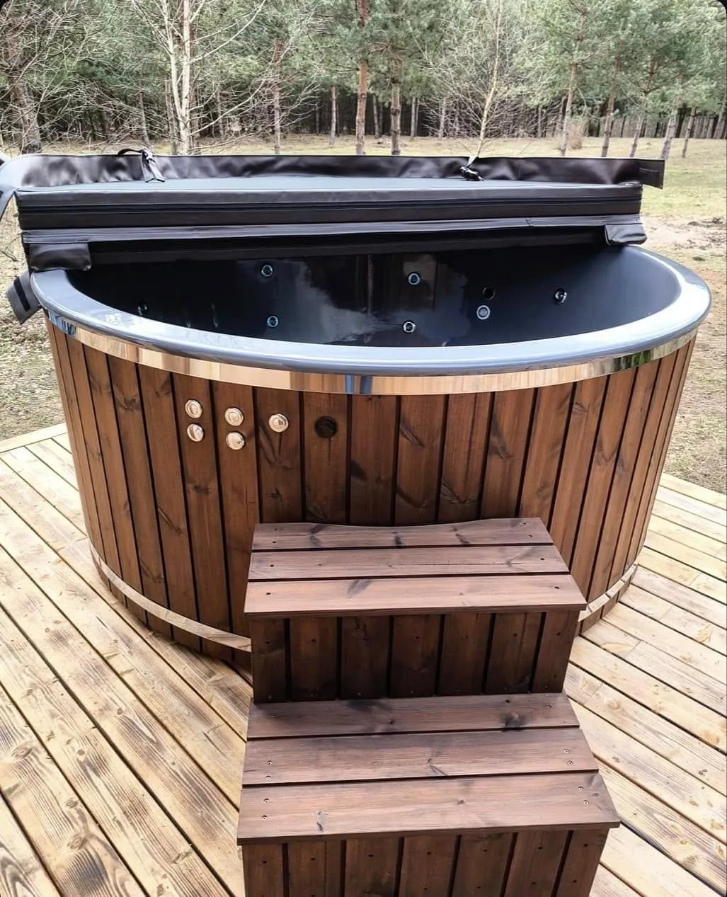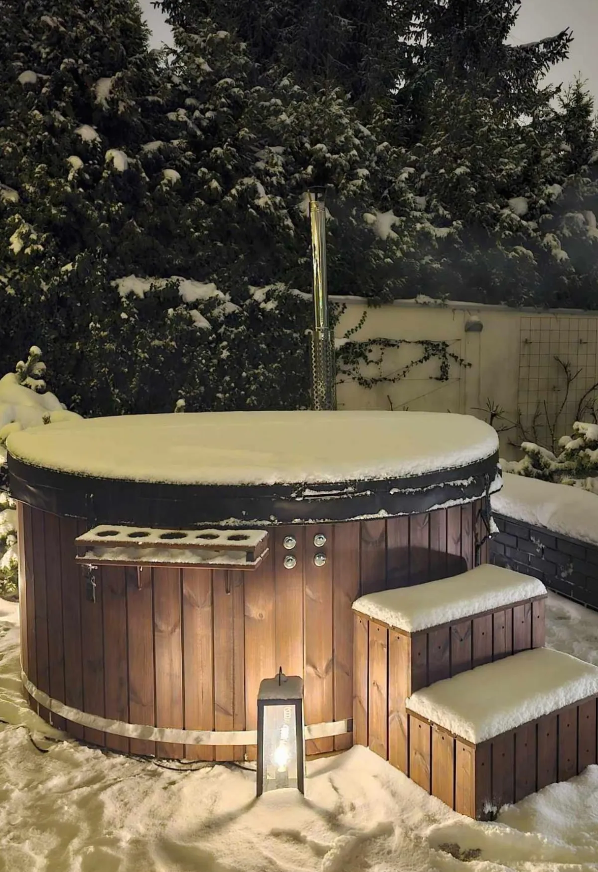 Our hot tubs are fully wood-fired, meaning no electricity is needed to heat the water — just firewood and time. However, some optional features like LED lighting, hydrotherapy jets, bubble systems, and electronic thermometers do require a standard power source. These add-ons are completely optional, so if you’re going off-grid or prefer a simple soak, you can run the tub without any electricity at all.